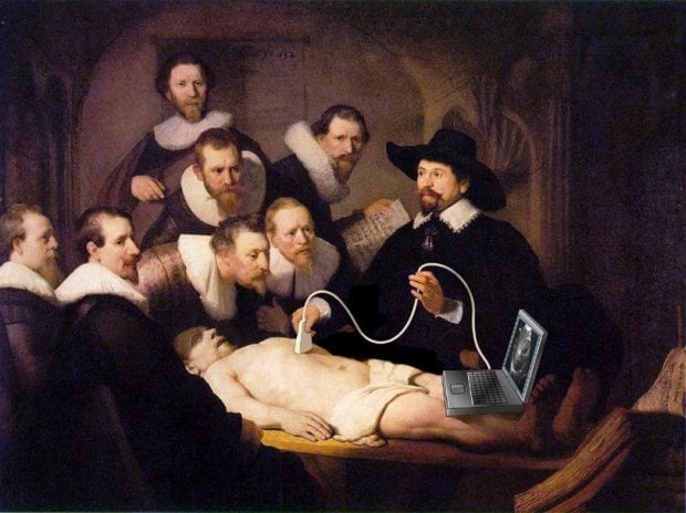 There is excellent evidence in the literature that med students can easily learn POCUS [4,5,6]. In one study, students performing echocardiography (after 18 hours of training) outperformed consultant cardiologists (using traditional clinical examination) in diagnosing valvular and non-valvular cardiac disease [7].